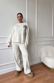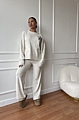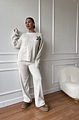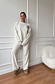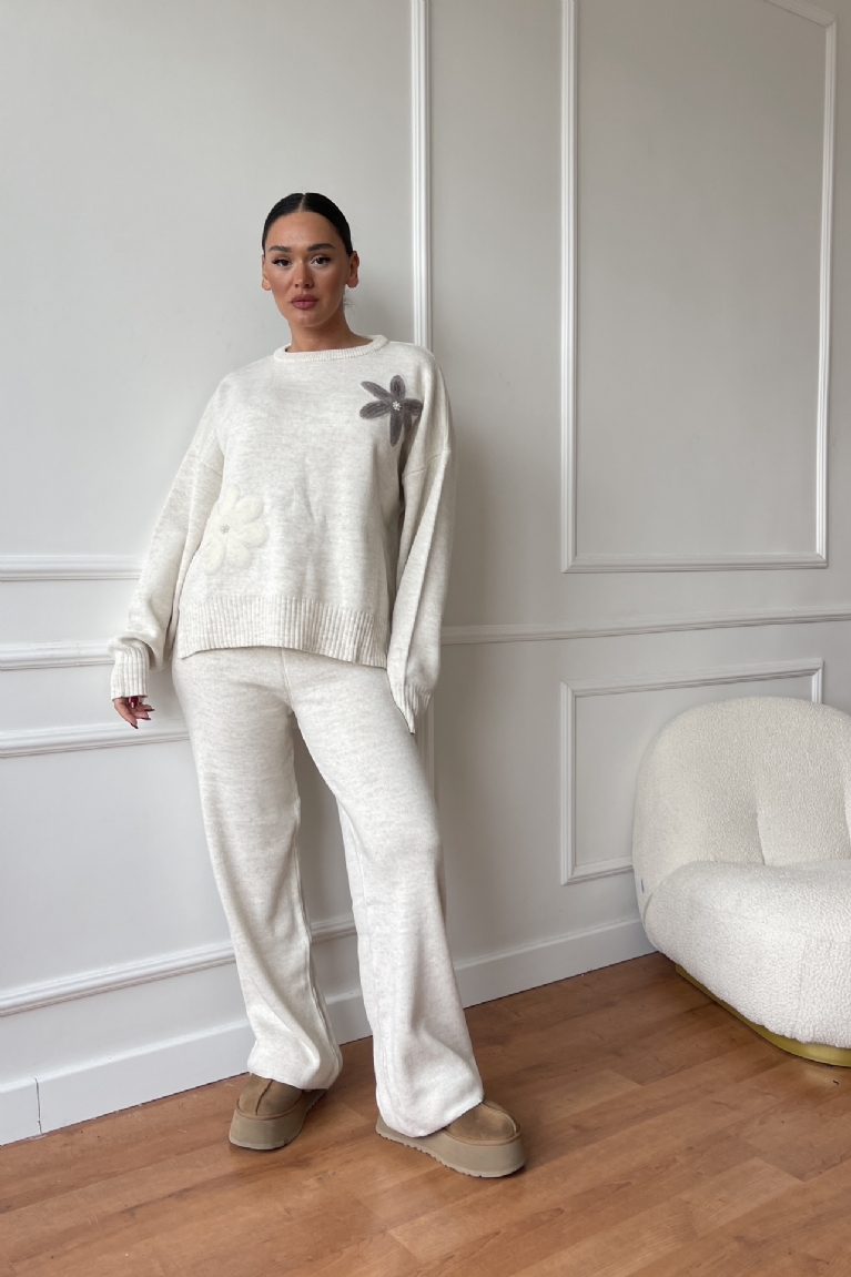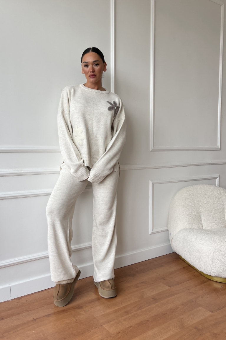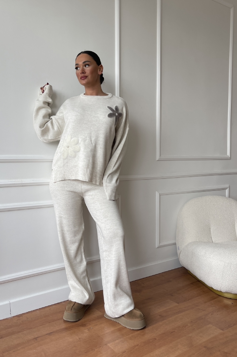 Σετ Πλεκτή Μπλούζα Με Λουλούδια & Παντελόνα - Εκρού