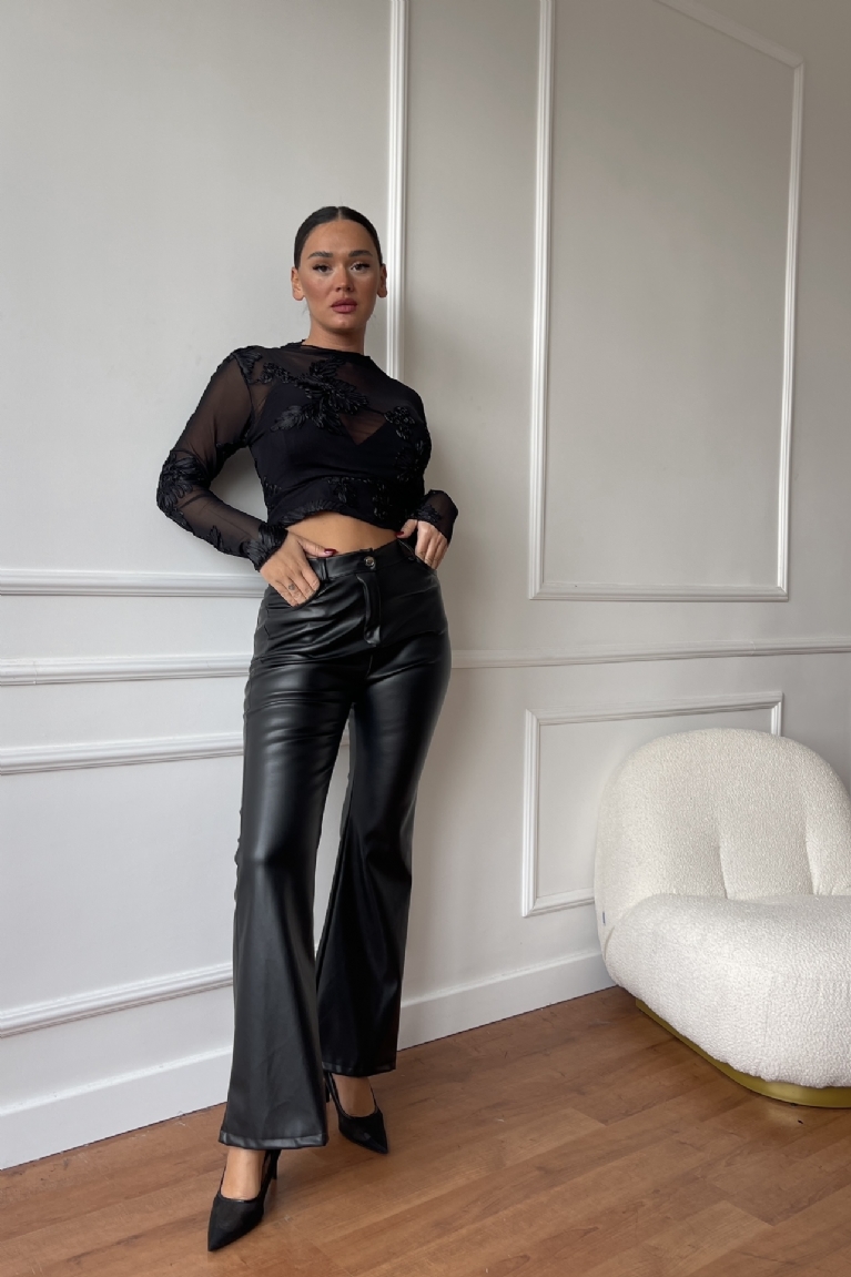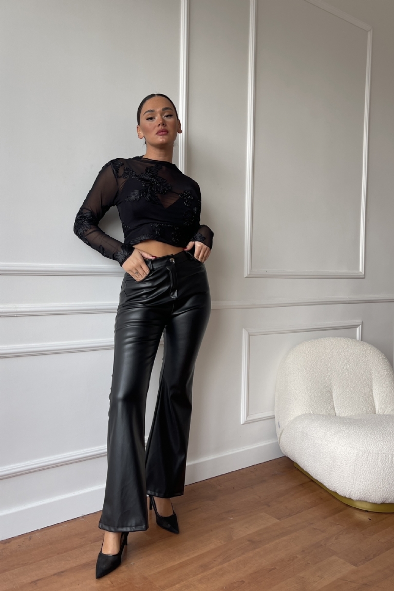 Αναδείξτε το στυλ σας με το μακρυμάνικο top διαφάνεια με λουλούδια σε μαύρο χρώμα.