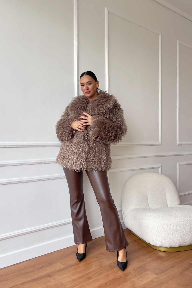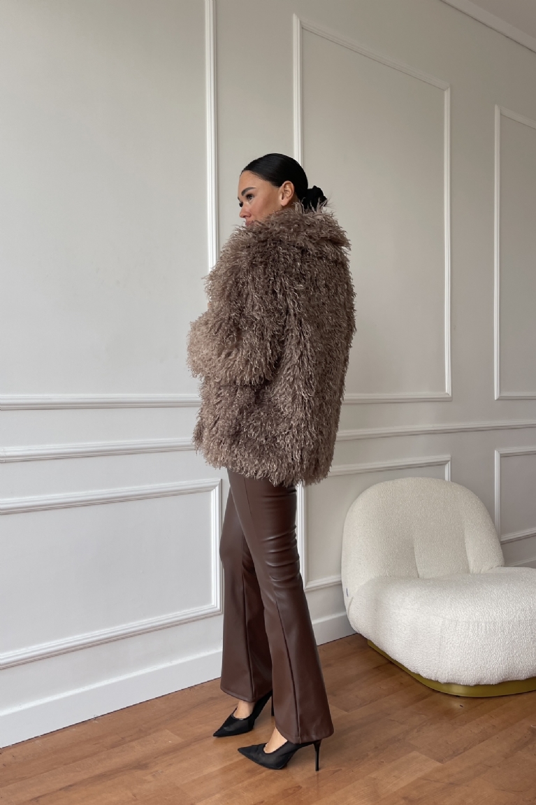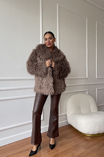 Γούνα Κοντή Με Γιακά - Καφέ Πούρου