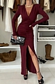Φόρεμα Μακρυμάνικο Κρουαζέ Με Σκίσιμο & Βάτες Στους Ώμους - Μπορντό