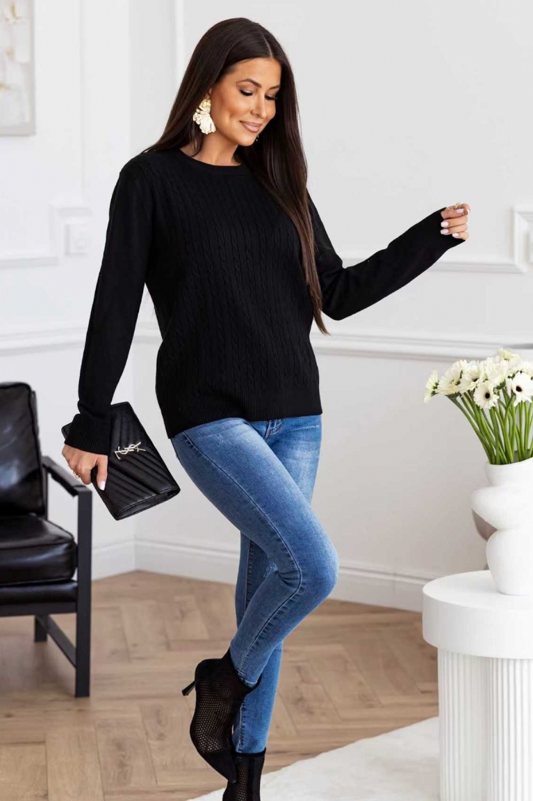 Αναδείξτε το στυλ σας με αυτή τη μακρυμάνικη πλεκτή μπλούζα σε μαύρο χρώμα, που ξεχωρίζει με το κομψό σχέδιο στην πλέξη της.