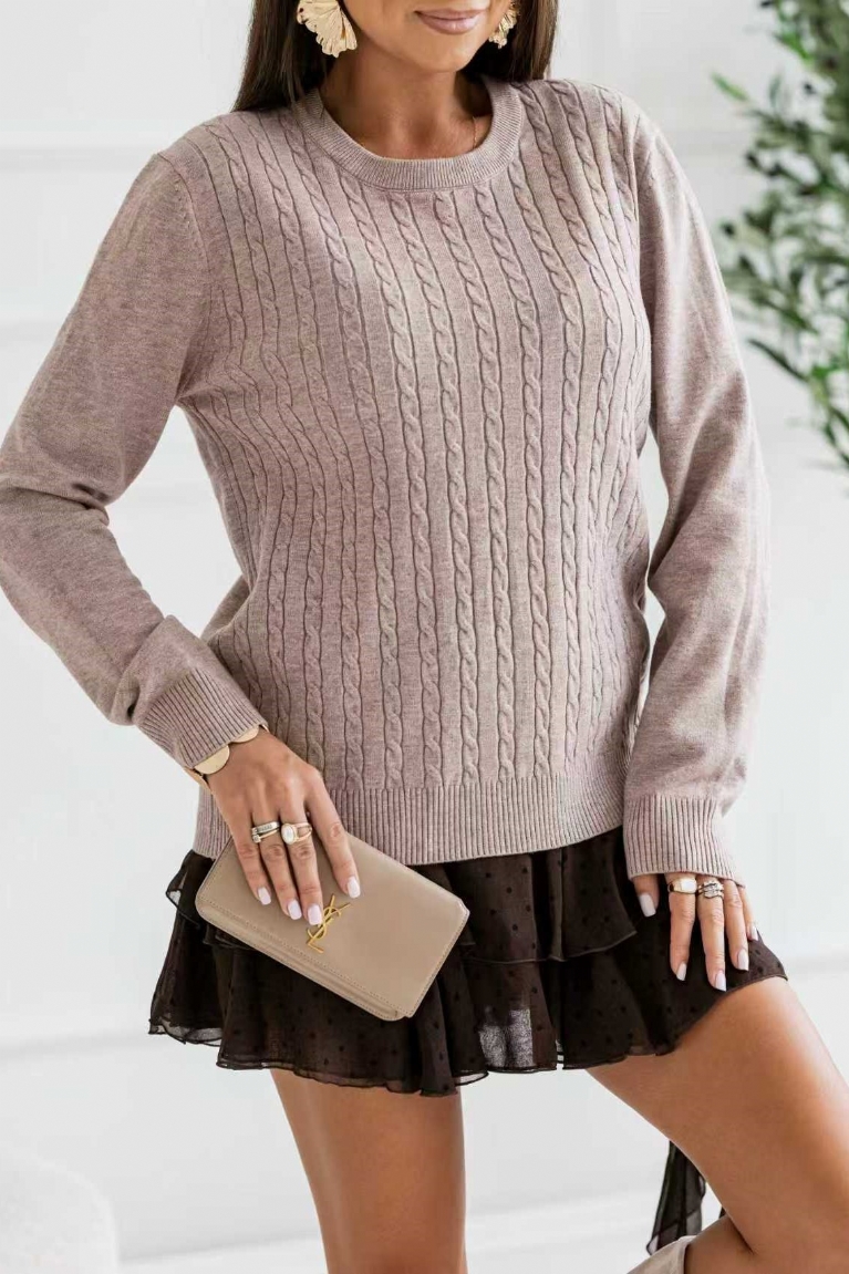 Μπλούζα Πλεκτή Μακρυμάνικη Με Σχέδιο Στην Πλέξη - Καφέ Πούρου