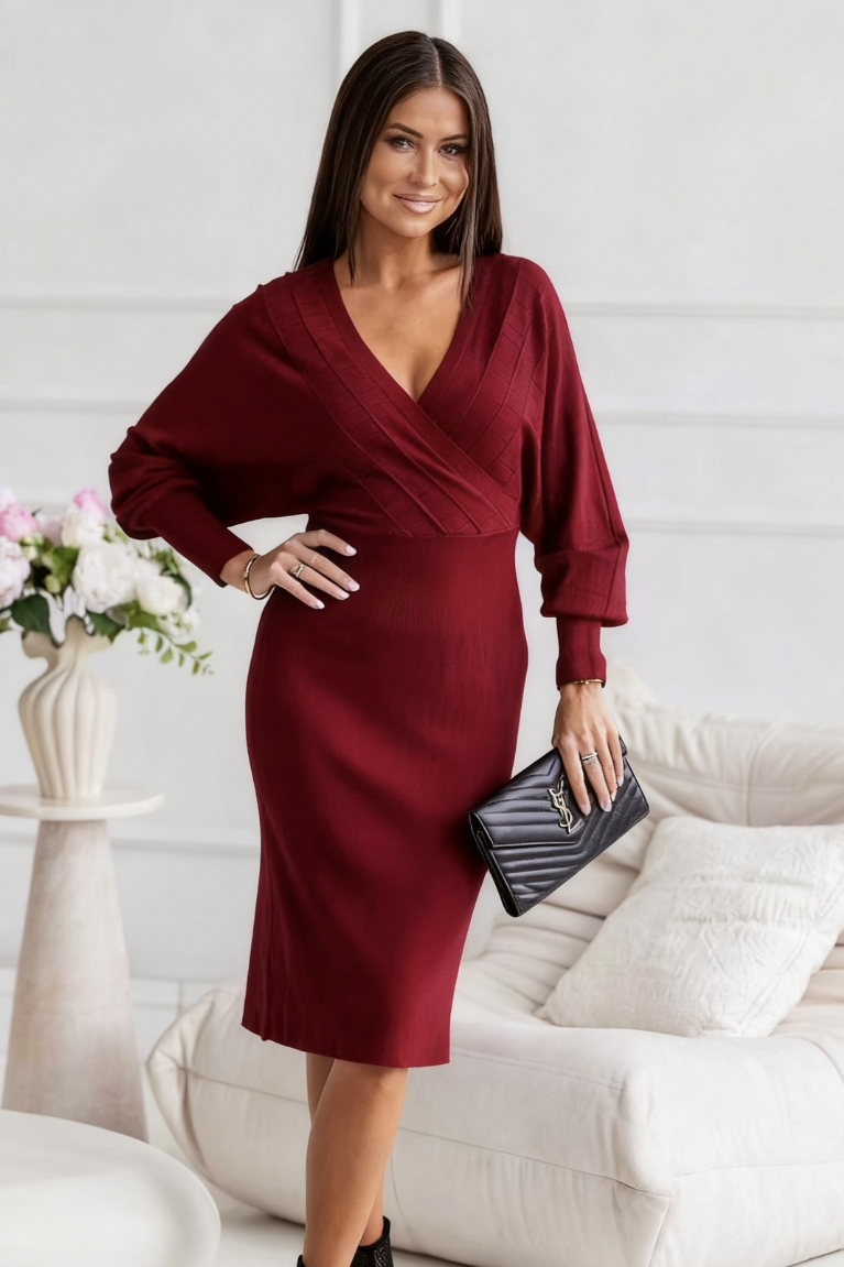 Αναδείξτε το στυλ σας με το midi πλεκτό κρουαζέ σε εντυπωσιακό μπορντό χρώμα.