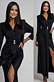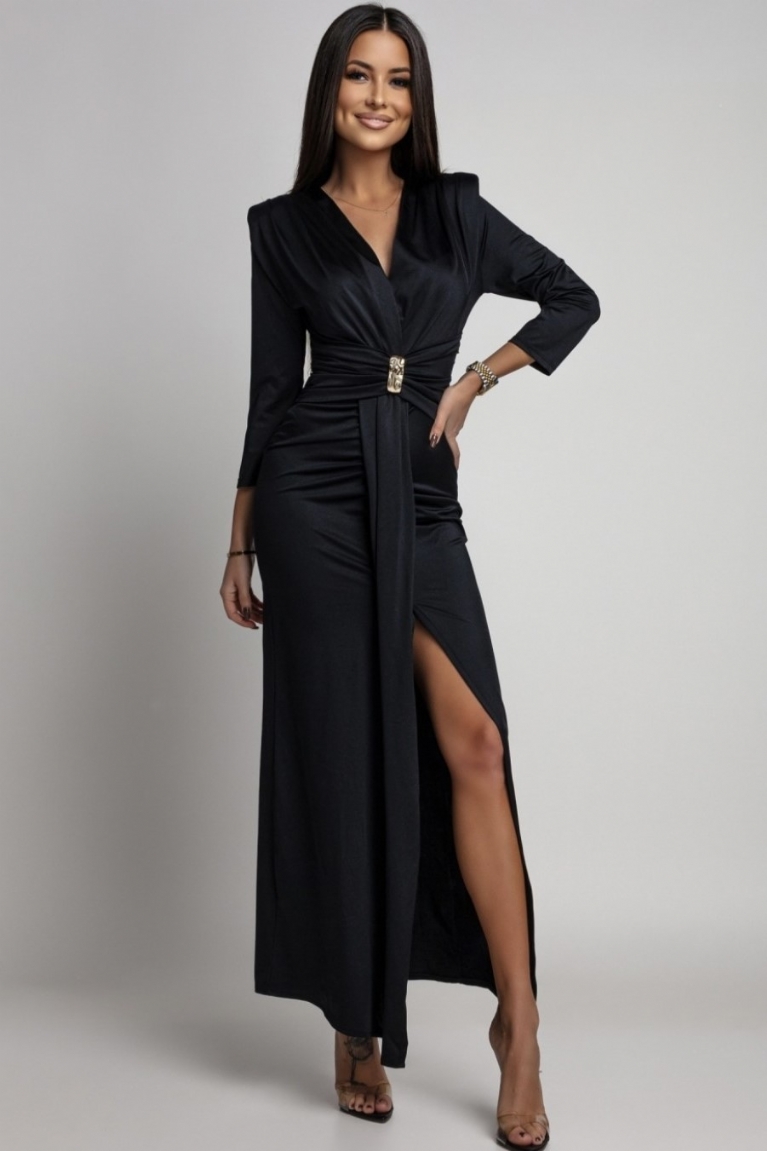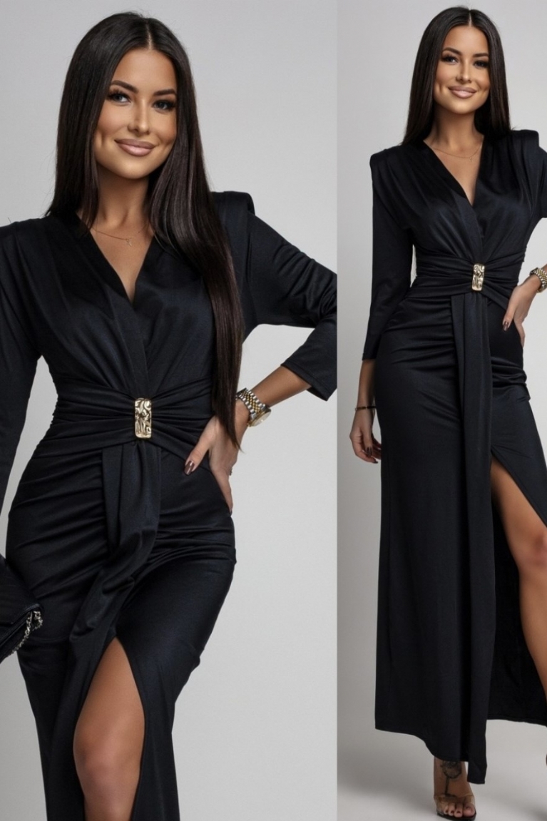 Φόρεμα Μακρυμάνικο Κρουαζέ Με Άνοιγμα & Χρυσή Λεπτομέρεια - Μαύρο