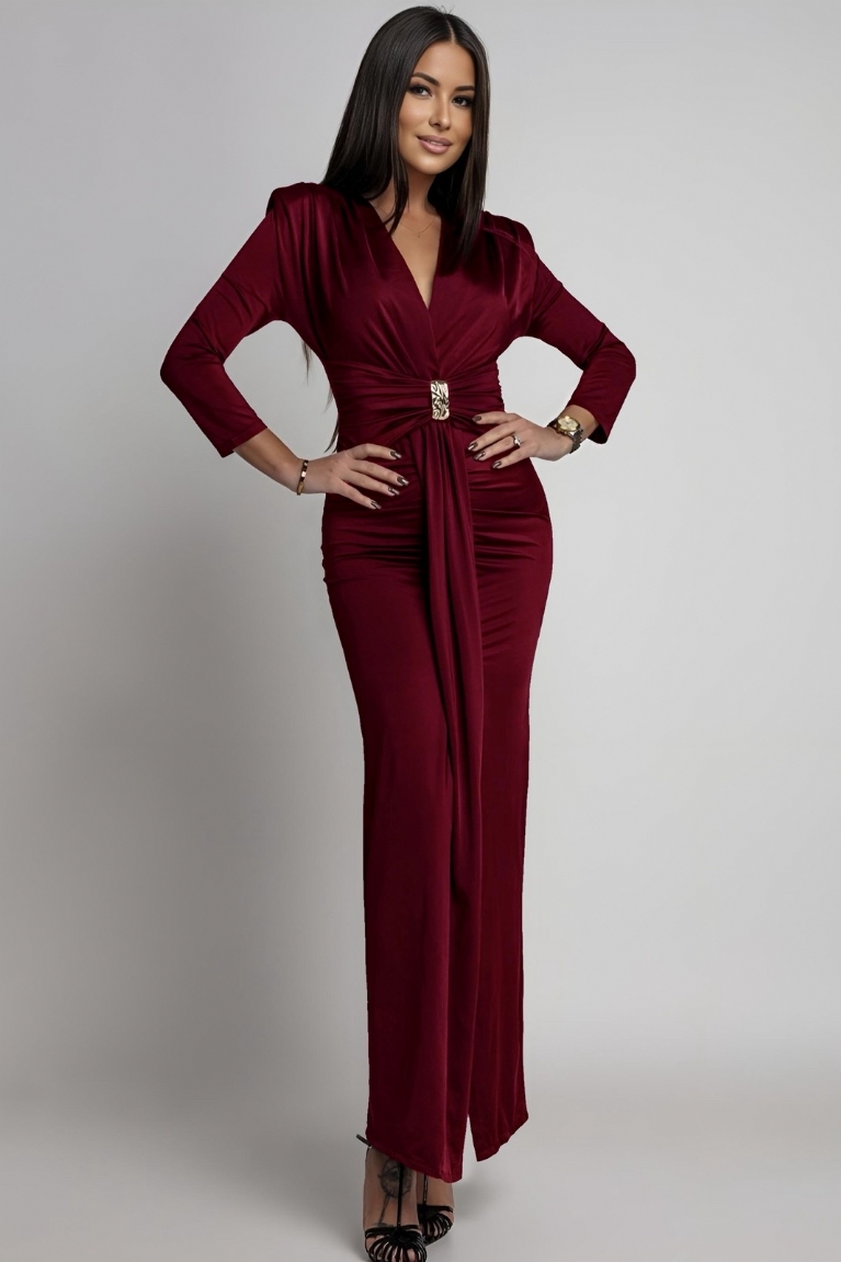 Φόρεμα Μακρυμάνικο Κρουαζέ Με Άνοιγμα & Χρυσή Λεπτομέρεια - Μπορντό