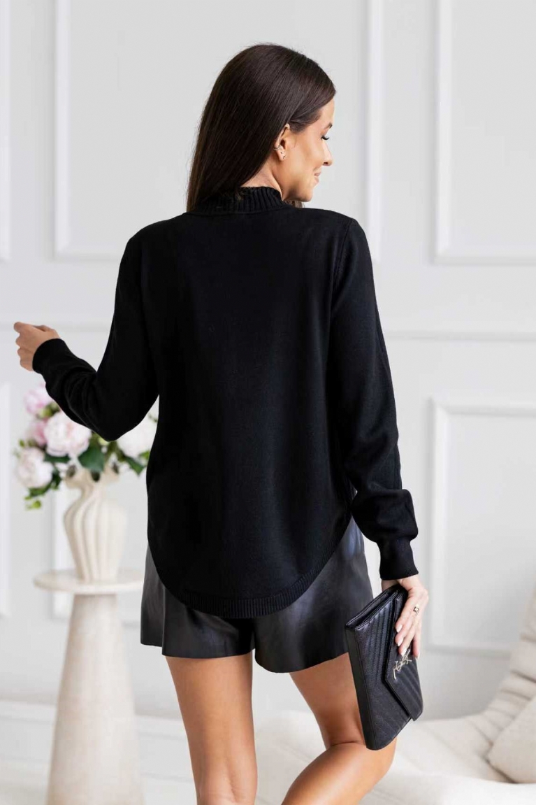 Αναδείξτε το στυλ σας με αυτή τη μαύρη πλεκτή μακρυμάνικη μπλούζα, ιδανική για formal εμφανίσεις.