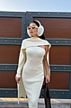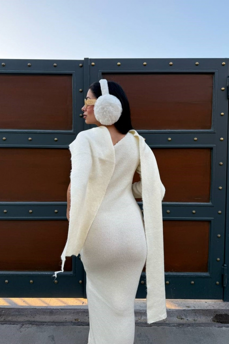 Φόρεμα Πλεκτό Μακρύ Με Έναν Ώμο & Αποσπώμενο Κασκόλ - Μπεζ