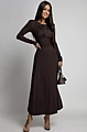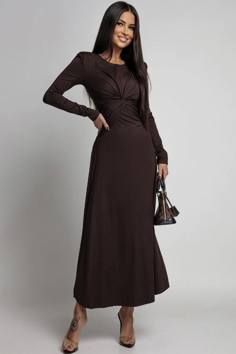 Φόρεμα Μακρύ Σε Άλφα Γραμμή Με Βάτες - Καφέ