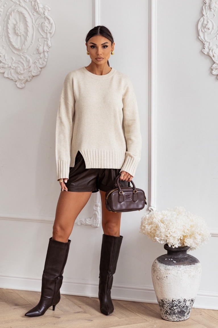 Ανανεώστε το formal στυλ σας με τη μπλούζα πλεκτή oversize σε μπεζ απόχρωση.
