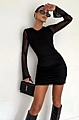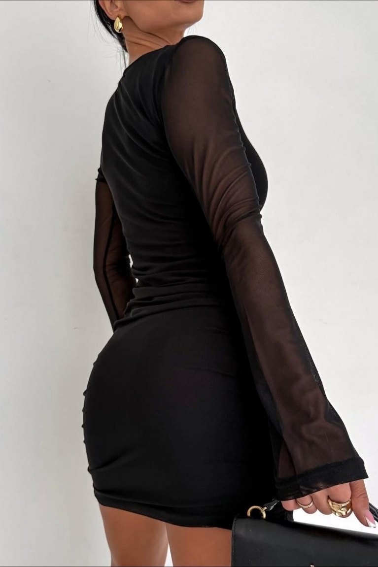 Φόρεμα Mini Μακρυμάνικο Με Διαφάνεια - Μαύρο