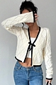 Ζακέτα Crop Με Δέσιμο & Διχρωμία - Λευκό