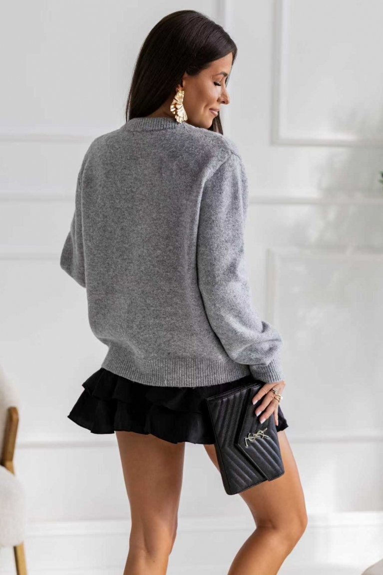 Αναβαθμίστε το στυλ σας με τη γκρι ζακέτα με κουμπιά και κομψό δέσιμο στον λαιμό.