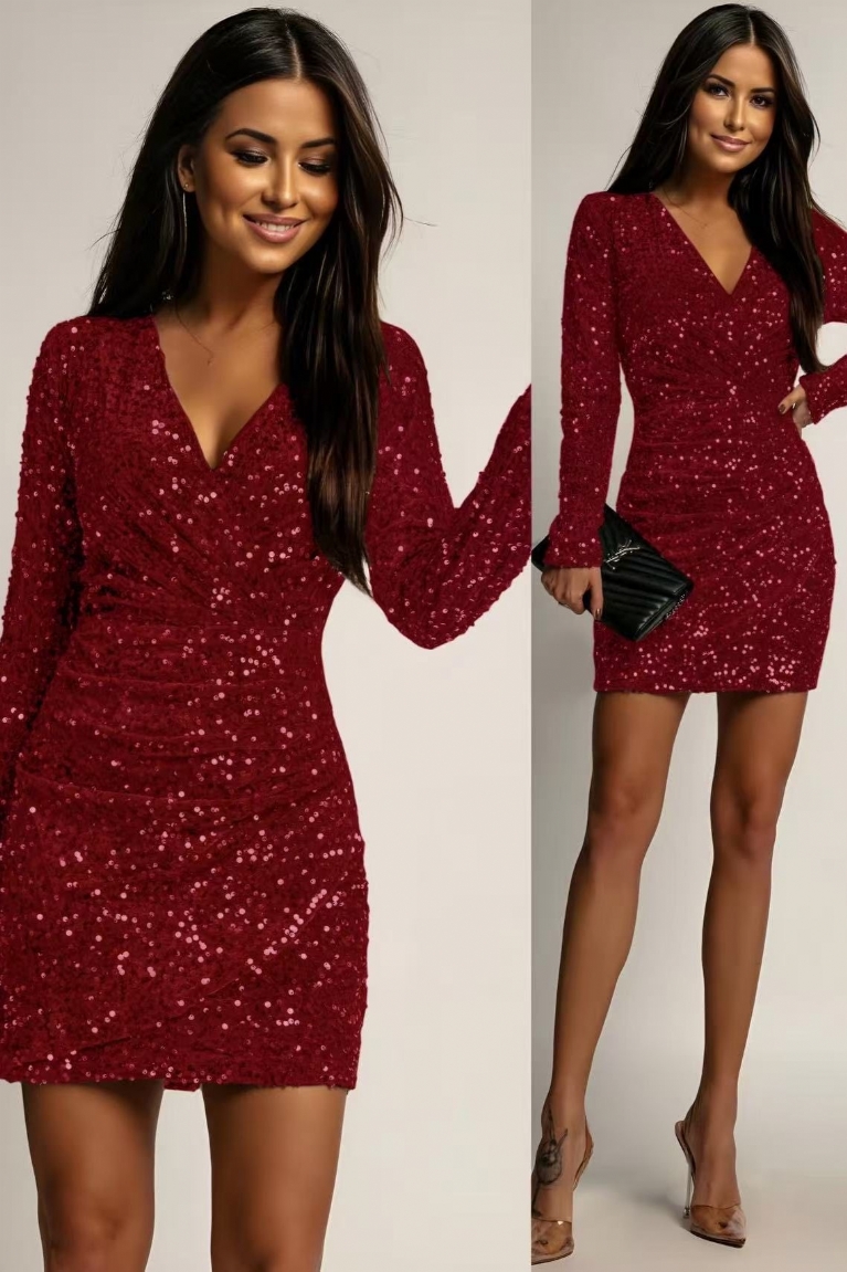 Λάμψε σε κάθε επίσημη εμφάνιση με το mini κρουαζέ φόρεμα παγιέτα σε μπορντό χρώμα.