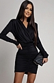 Φόρεμα Mini Κρουαζέ Με Βάτες Στους Ώμους - Μαύρο