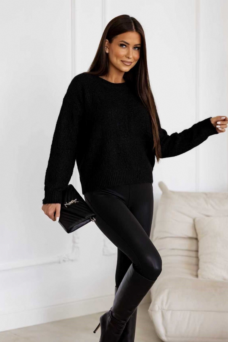 Αναδείξτε το στυλ σας με αυτή τη μαύρη πλεκτή μπλούζα, που ξεχωρίζει με τον εντυπωσιακό φιόγκο στην πλάτη.