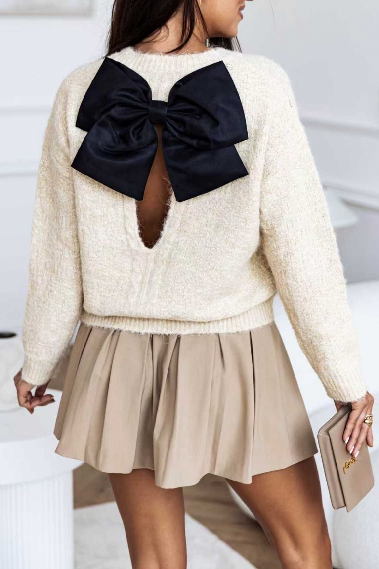 Αναδείξτε το στυλ σας με την elegant μπεζ πλεκτή μπλούζα, διακοσμημένη με εντυπωσιακό φιόγκο στην πλάτη.