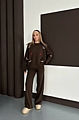 Σετ Πλεκτή Μπλούζα Oversize Με Σχέδια & Παντελόνα - Καφέ