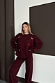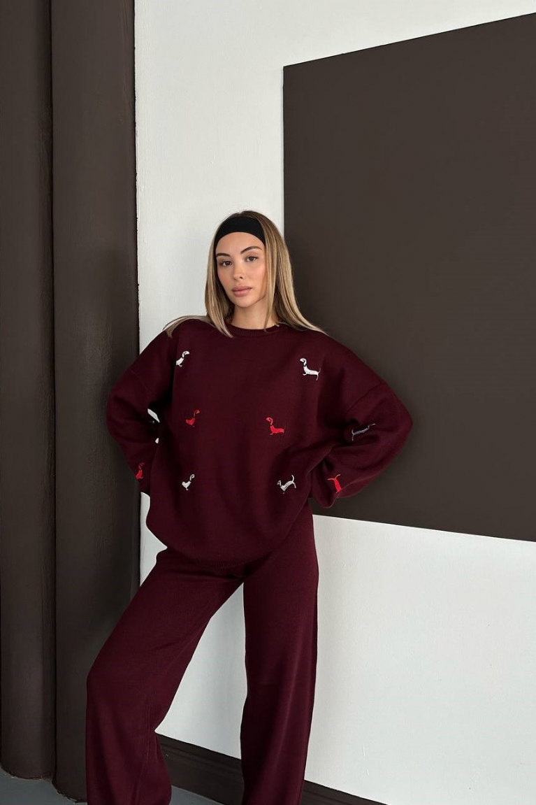 Σετ Πλεκτή Μπλούζα Oversize Με Σχέδια & Παντελόνα - Μπορντό