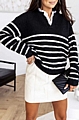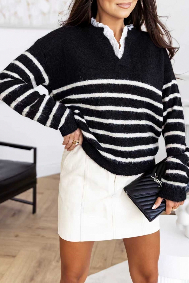 Αναδείξτε το στυλ σας με τη ριγέ πλεκτή μπλούζα σε μαύρο χρώμα και κομψό εσωτερικό γιακά.