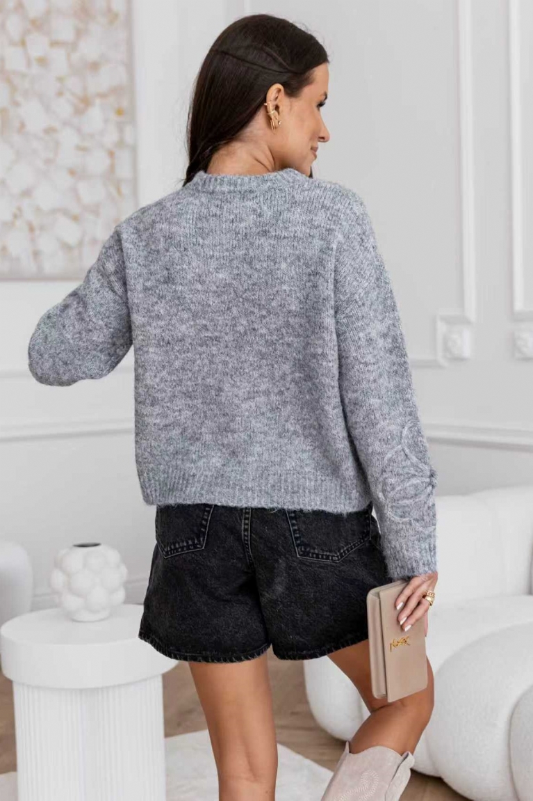 Ανανεώστε το στυλ σας με αυτή τη γκρι πλεκτή μπλούζα, που ξεχωρίζει με το μοναδικό σχέδιο στην ύφανση.