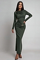 Αναδείξτε τη θηλυκότητά σας με αυτό το μακρυμάνικο φόρεμα σε εντυπωσιακή χακί απόχρωση και λαμπερές χρυσές λεπτομέρειες.