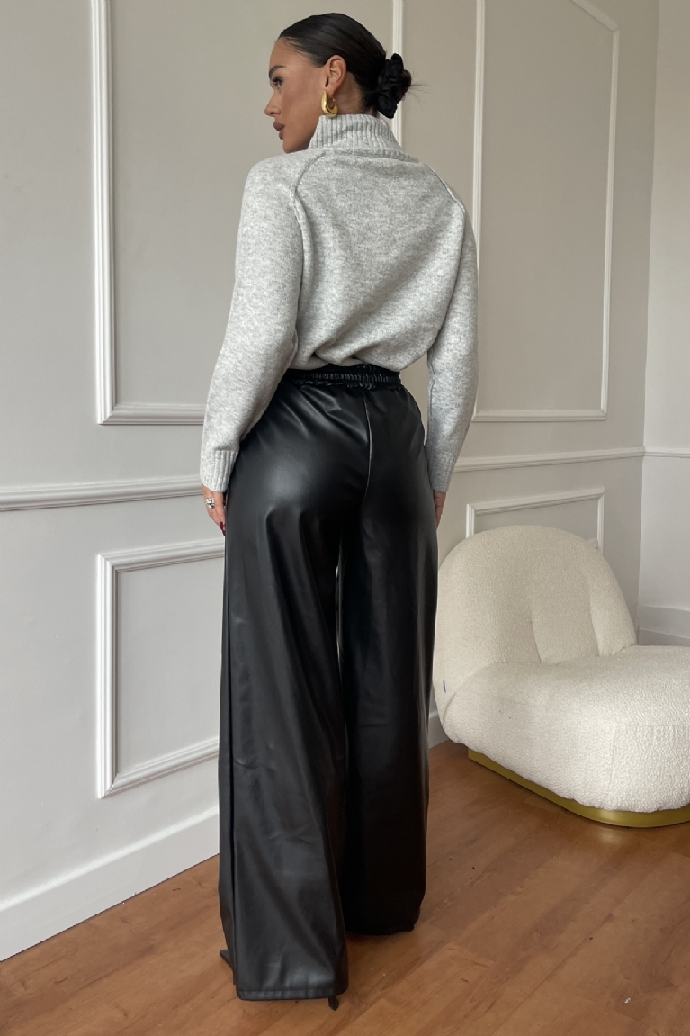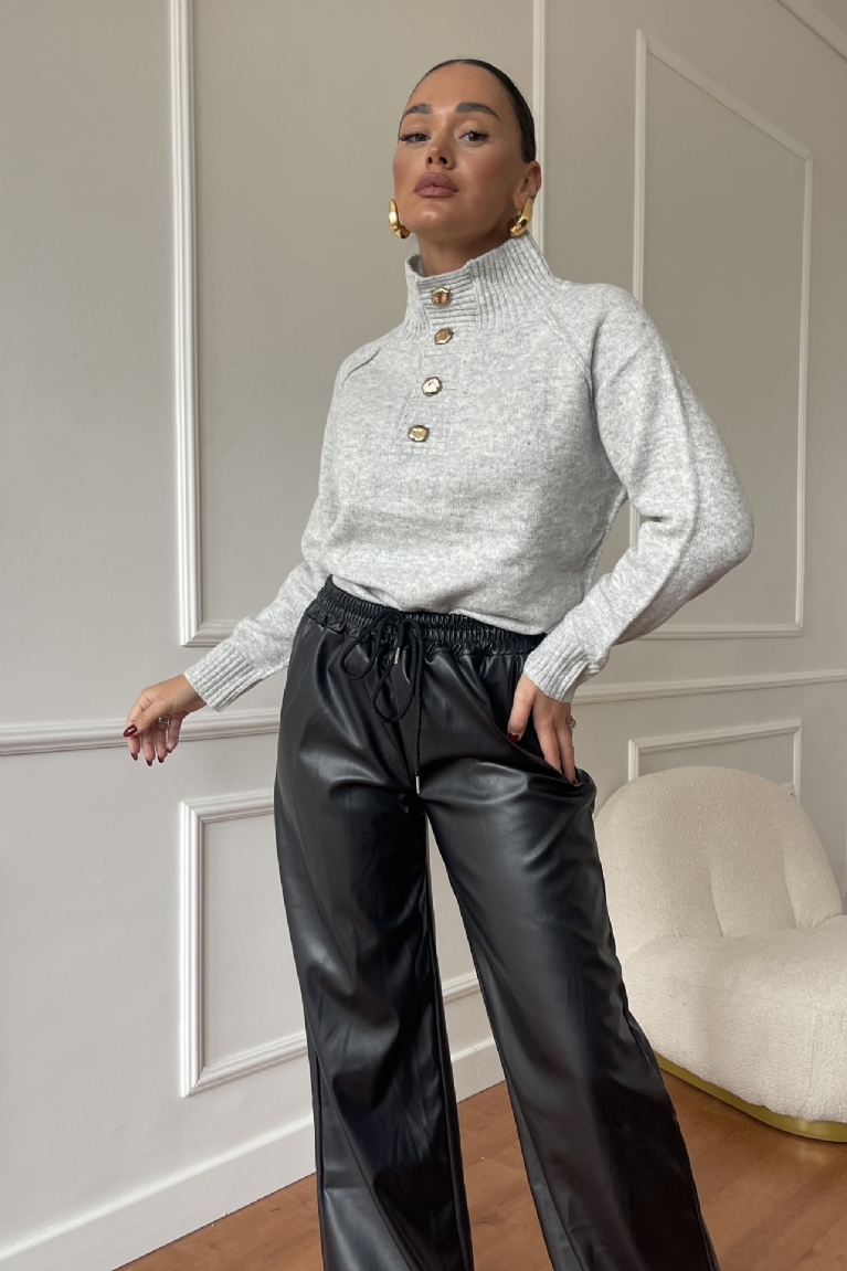 Ανανεώστε το formal στυλ σας με τη γκρι πλεκτή ζιβάγκο μπλούζα με κομψά κουμπιά.