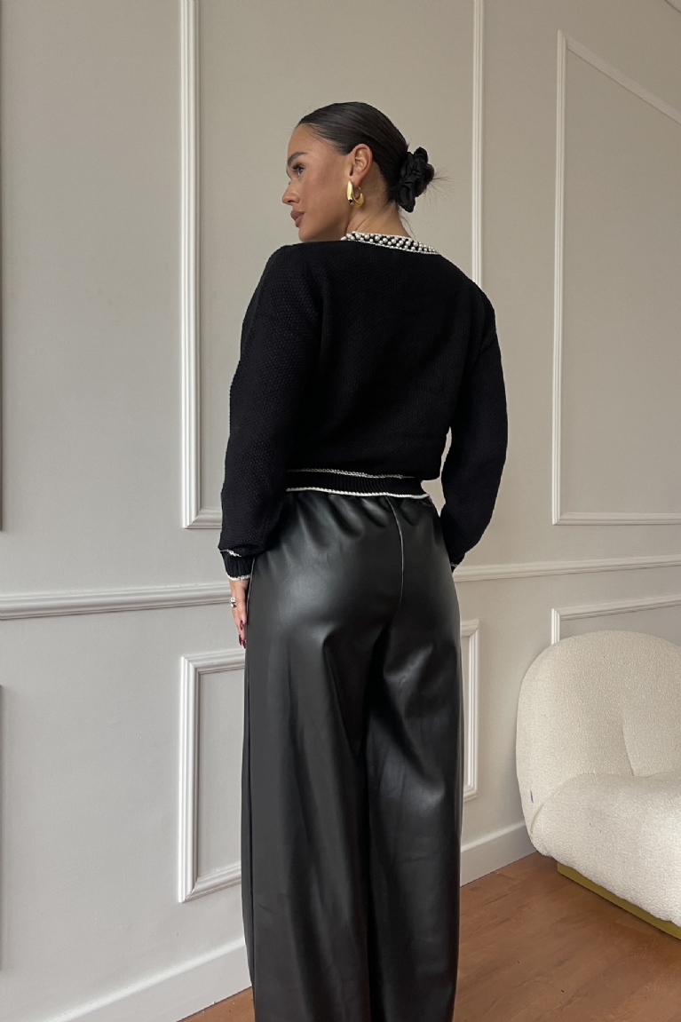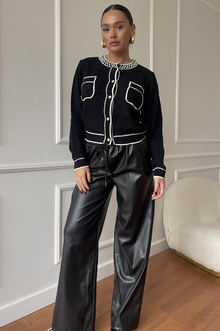 Η ζακέτα πλεκτή με κουμπιά και τσέπες σε μαύρο χρώμα συνδυάζει διαχρονική κομψότητα με μοντέρνο formal χαρακτήρα.