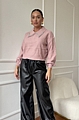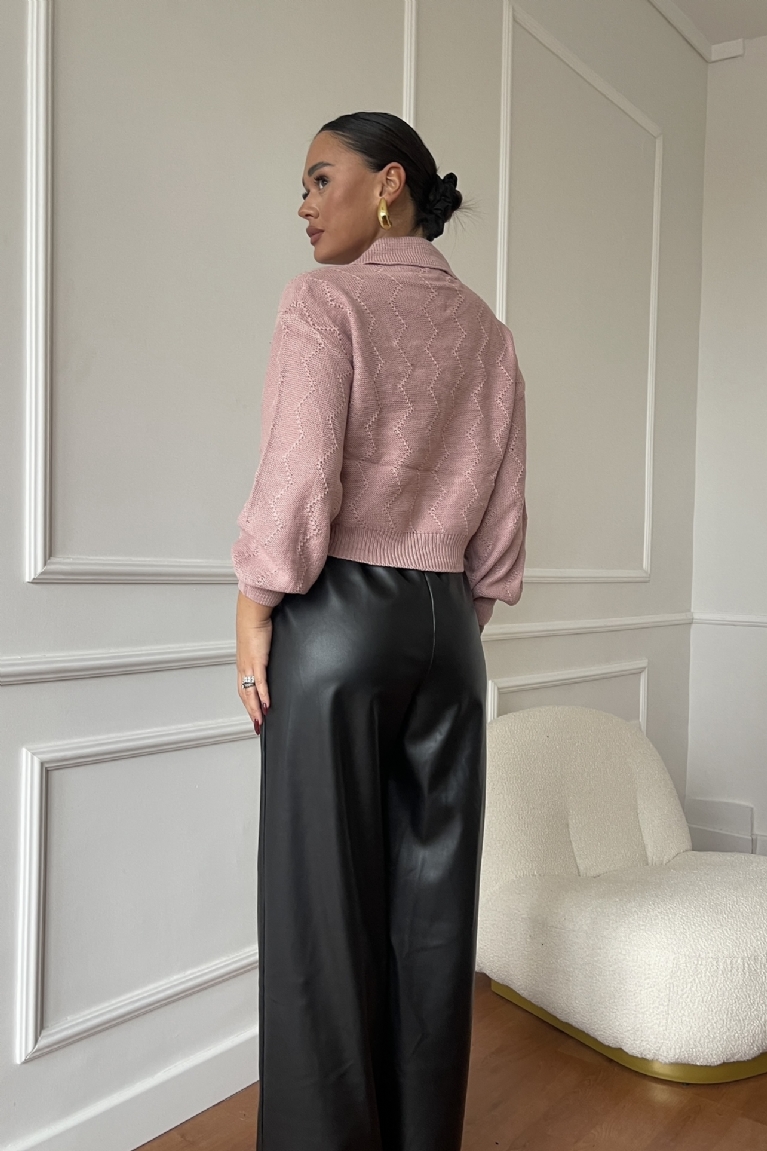 Μπλούζα Πλεκτή Crop Με Γιακά & Λεπτομέρειες - Ροζ