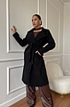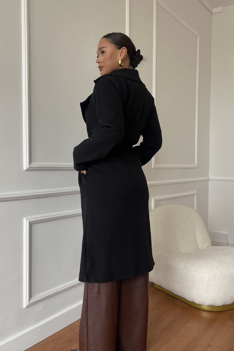 Αναδείξτε το στυλ σας με το μαύρο σουέτ παλτό με κουμπιά και ζώνη, ιδανικό για formal εμφανίσεις.