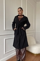 Παλτό Σουέτ Με Κουμπιά & Ζώνη Χωρίς Φόδρα - Μαύρο