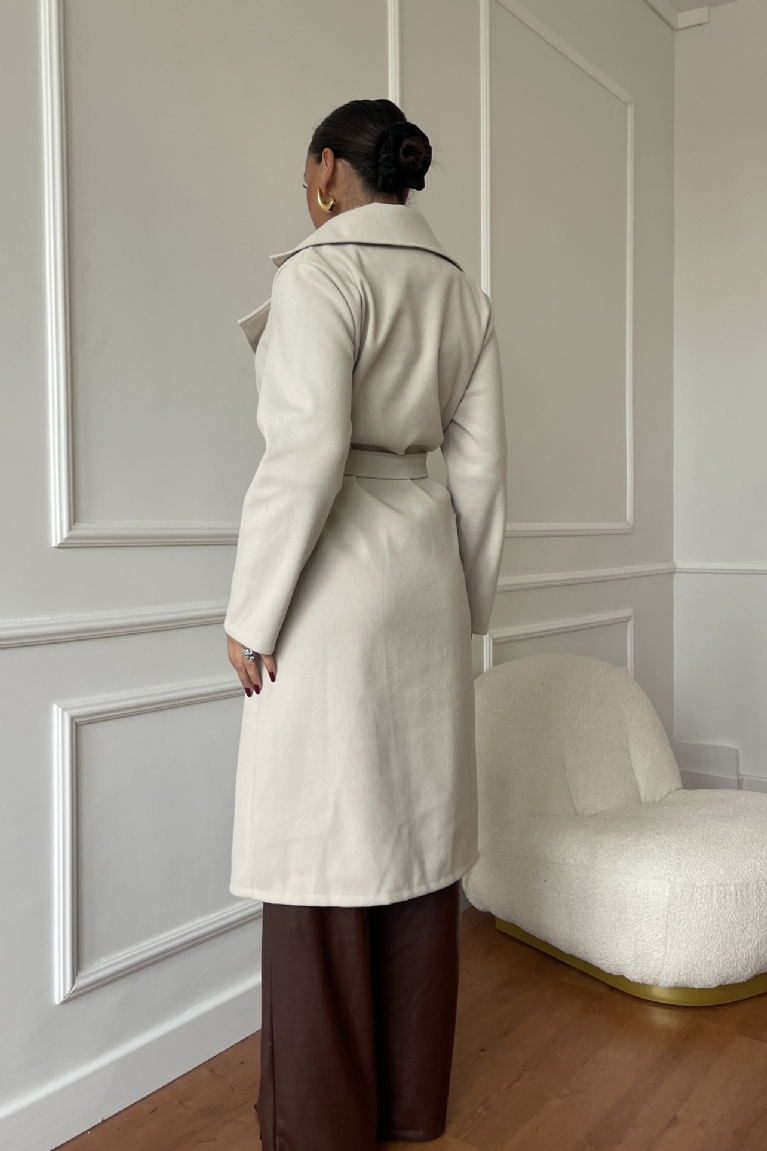 Παλτό Σουέτ Με Κουμπιά & Ζώνη Χωρίς Φόδρα - Μπεζ