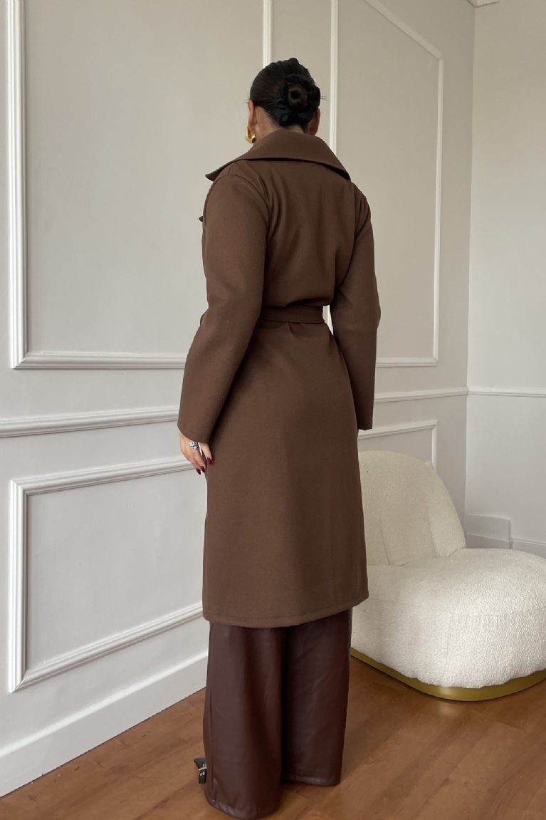 Παλτό Σουέτ Με Κουμπιά & Ζώνη Χωρίς Φόδρα - Καφέ