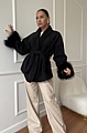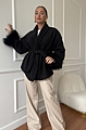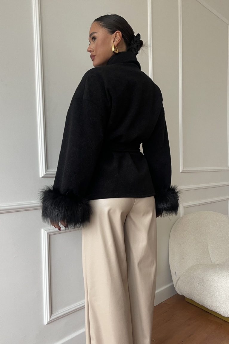 Παλτό Κοντό Σουέτ Με Ζώνη & Λεπτομέρεια Στα Μανίκια - Μαύρο