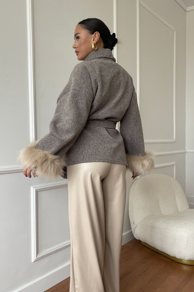 Παλτό Κοντό Σουέτ Με Ζώνη & Λεπτομέρεια Στα Μανίκια - Καφέ Πούρου