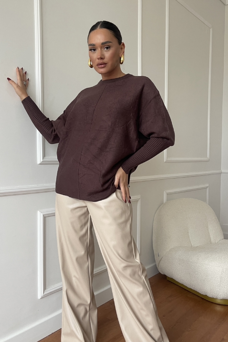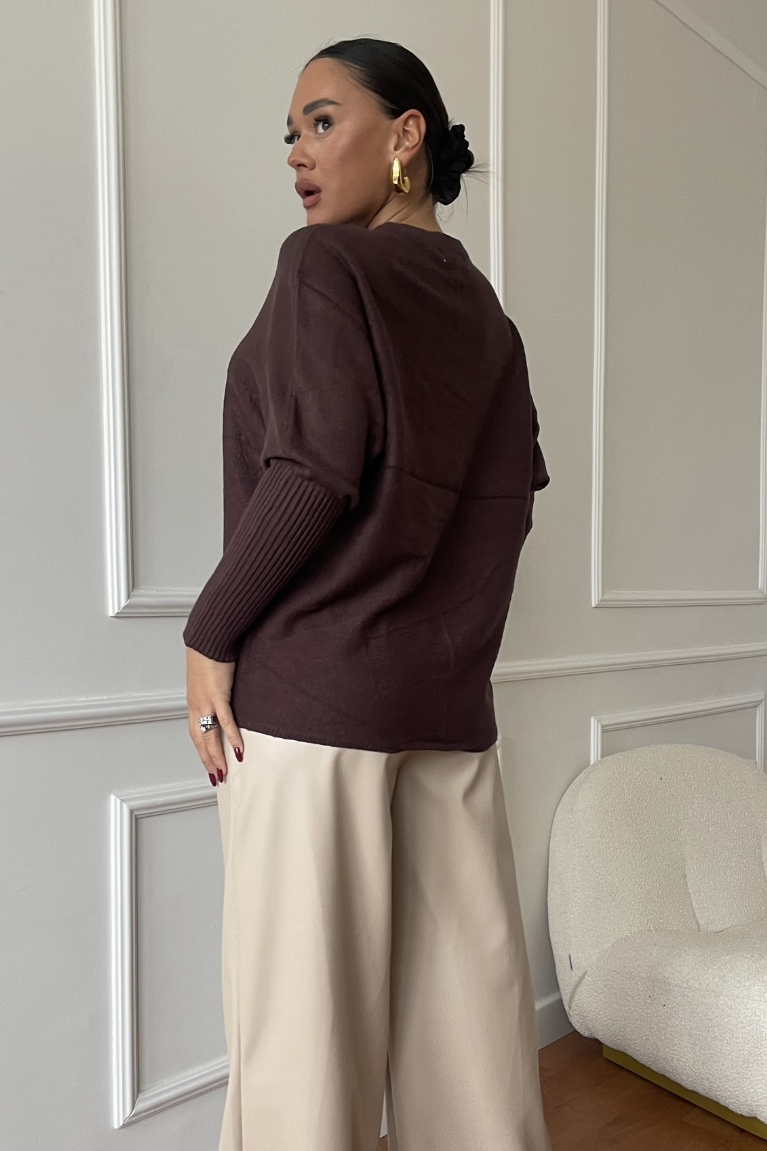 Ανανεώστε το στυλ σας με αυτή την πλεκτή oversize μπλούζα σε elegant καφέ απόχρωση.