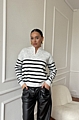 Μπλούζα Ριγέ Πλεκτή Με Εσωτερικό Γιακά - Γκρι