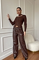 Παντελόνα Δερματίνη Με Λάστιχο & Κορδόνι - Καφέ