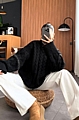 Mπούζα Πλεκτή Oversized Με Σχέδιο Στην Ύφανση - Μαύρο
