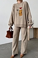 Σετ Πλεκτή Μπλούζα Με Σχέδιο & Παντελόνα - Μπεζ