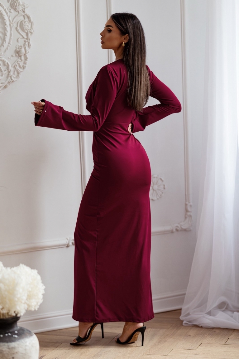 Φόρεμα Μακρύ Με Άνοιγμα & Χρυσές Λεπτομέρειες - Μπορντό