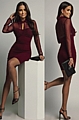Αναδείξτε τη θηλυκότητά σας με αυτό το εντυπωσιακό μπορντό mini φόρεμα με μακριά μανίκια, διαφάνειες και διακριτικά strass.