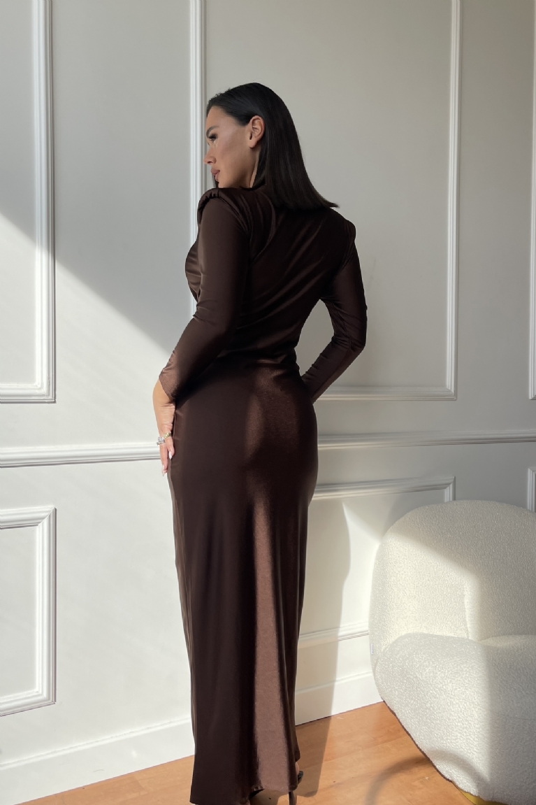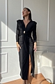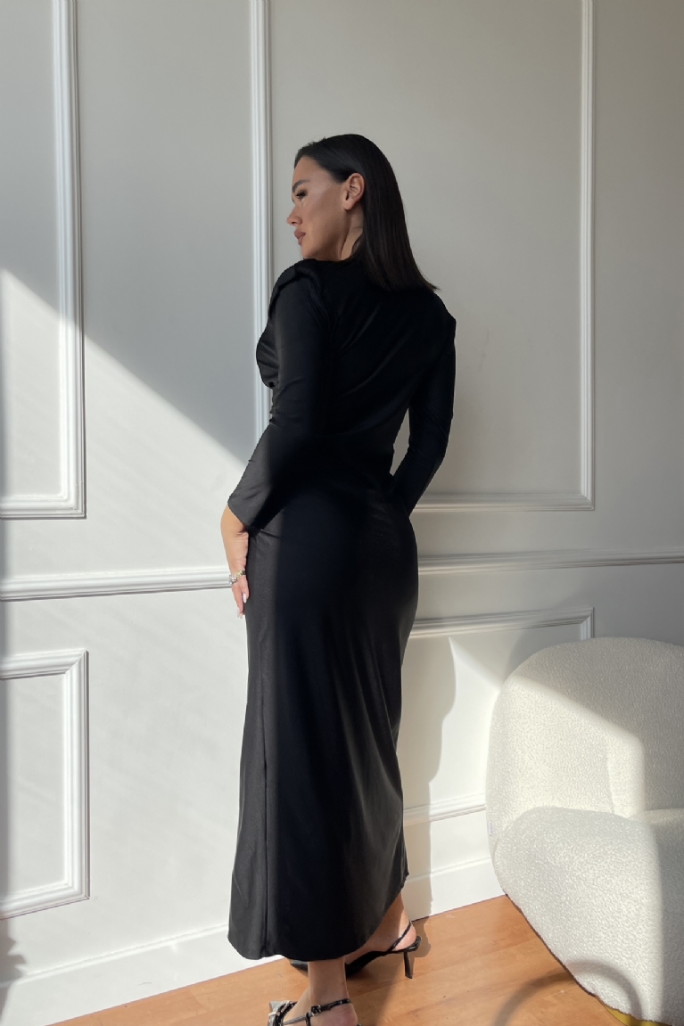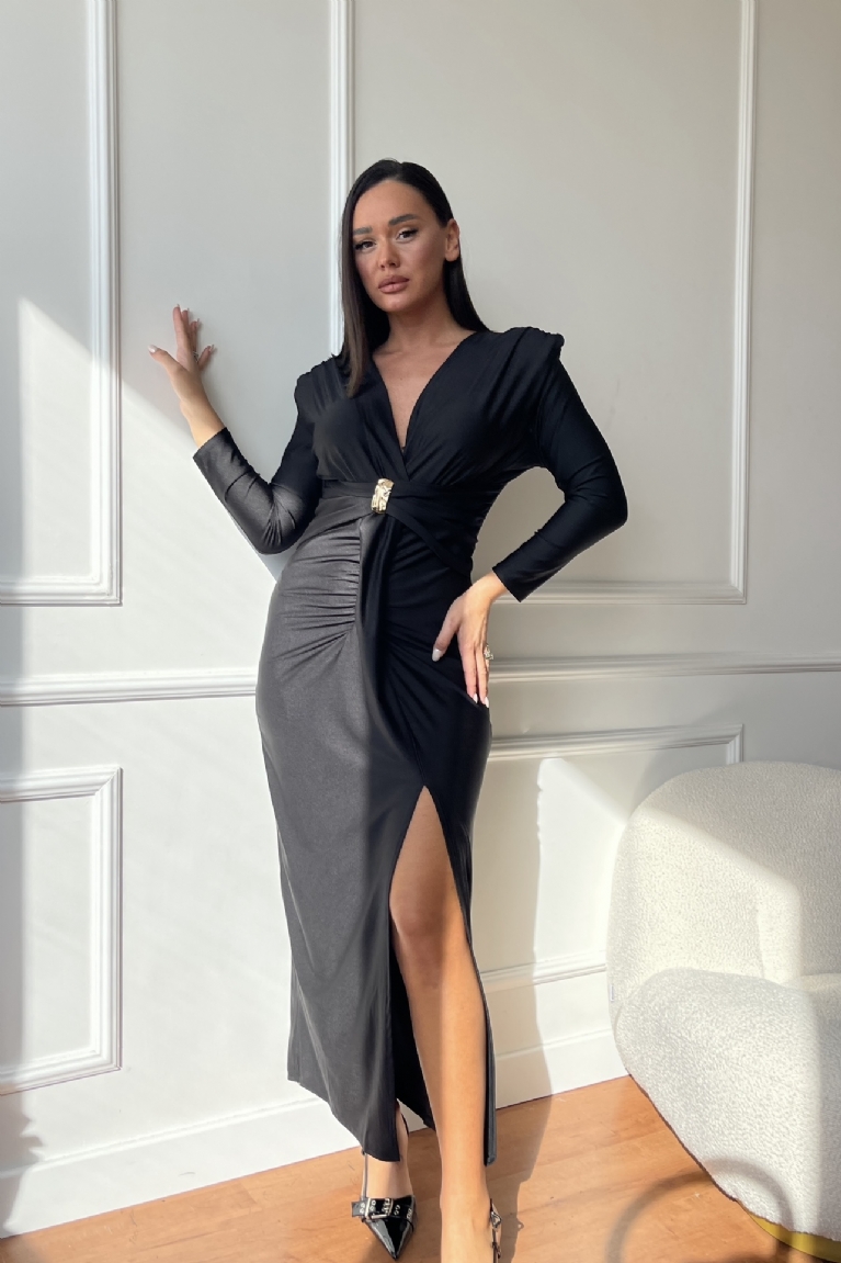Φόρεμα Μακρυμάνικο Κρουαζέ Με Άνοιγμα & Χρυσή Λεπτομέρεια - Μαύρο