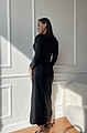 Αναδείξτε το στυλ σας με το μακρυμάνικο κρουαζέ φόρεμα σε μαύρο χρώμα, που ξεχωρίζει με το εντυπωσιακό άνοιγμα και τη χρυσή λεπτομέρεια στη μέση.