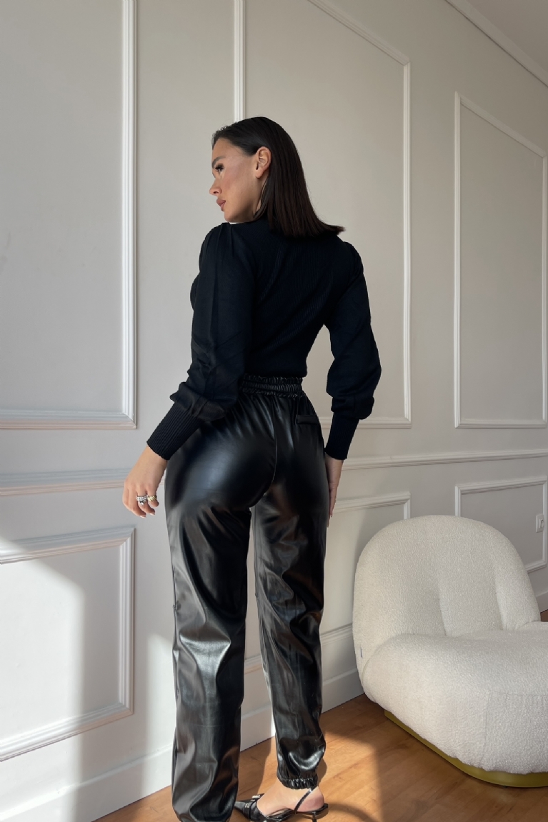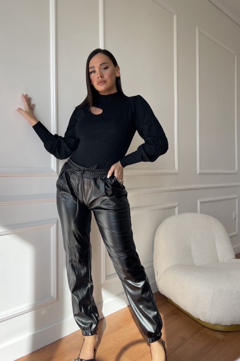Αναδείξτε το στυλ σας με τη μαύρη πλεκτή μακρυμάνικη ζιβάγκο με άνοιγμα, που συνδυάζει κομψότητα και μοντέρνα αισθητική.