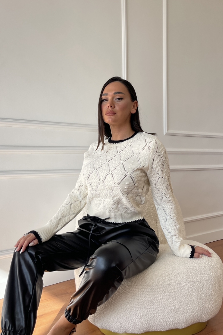 Αναδείξτε το στυλ σας με τη μπλούζα πλεκτή με διχρωμία σε λευκό χρώμα, που συνδυάζει κομψότητα και μοντέρνα αισθητική.