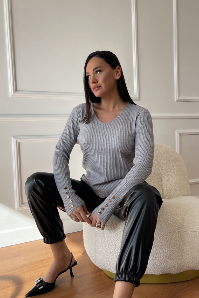 Μπλούζα Μακρυμάνικη Με Κουμπιά Στο Μανίκι - Γκρι