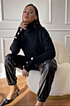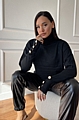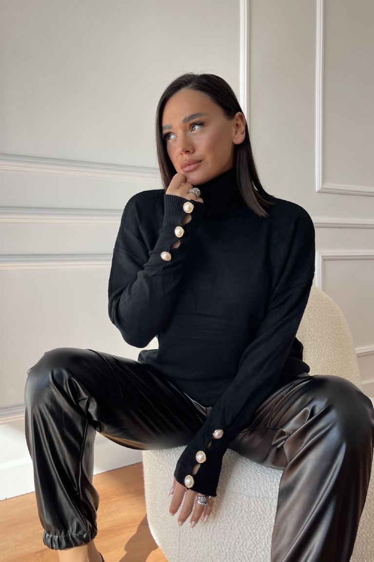 Αναδείξτε το στυλ σας με την πλεκτή ζιβάγκο μπλούζα σε μαύρο χρώμα και κομψά κουμπιά στα μανίκια.