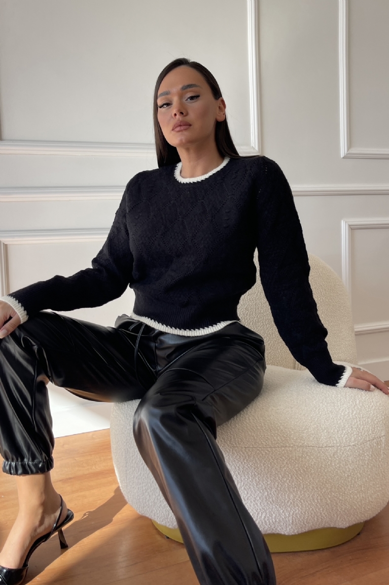 Μπλούζα Πλεκτή Με Διχρωμία - Μαύρο