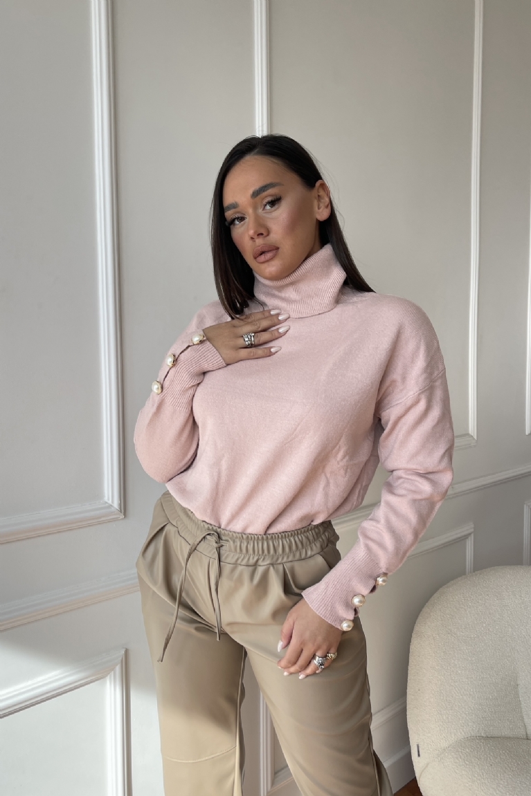 Μπλούζα Πλεκτή Ζιβάγκο Με Κουμπιά Στα Μανίκια - Ροζ