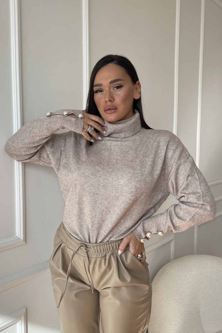 Μπλούζα Πλεκτή Ζιβάγκο Με Κουμπιά Στα Μανίκια - Καφέ Πούρου